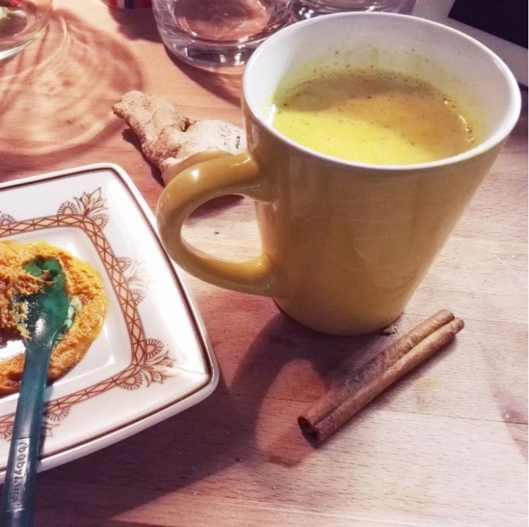 Hierbei handelt es sich um eine Milch mit heilender Wirkung, die die Lebertätigkeit anregt und den Körper beim Reinigen unterstützt. Durch den Kurkuma und Ingwer ist sie außerdem auch entzündungshemmend.