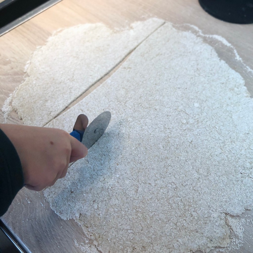 Der Teig wird geschmeidig und man kann ihn gut verarbeiten, da die Flohsamenschalen das Gluten ersetzen, der eigentlich als eine Art „Kleber“ dient.